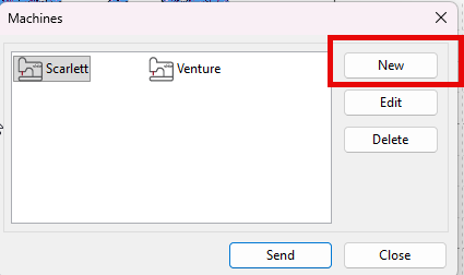 Now that it is set up you will see the name of your machine, select it (mine is Scarlet or Venture) Then hit send. You will find the designs in the Wi-Fi pocket of your machine.