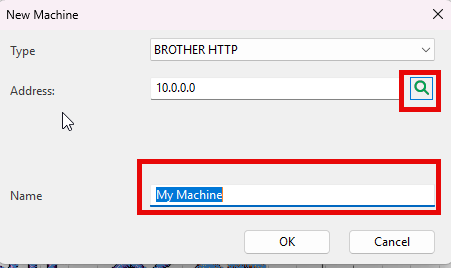Select on the search and find the IP address for your machine. You can find this in the settings on your machine. Anytime I have to set up a machine the IP address for it has been the longest one under search.