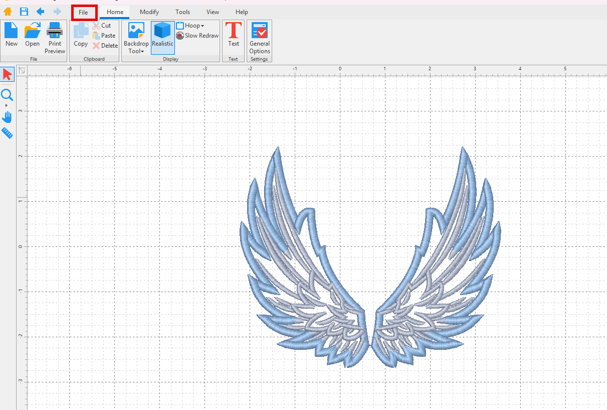 - With your design open on the workpage, click File in the menu bar.